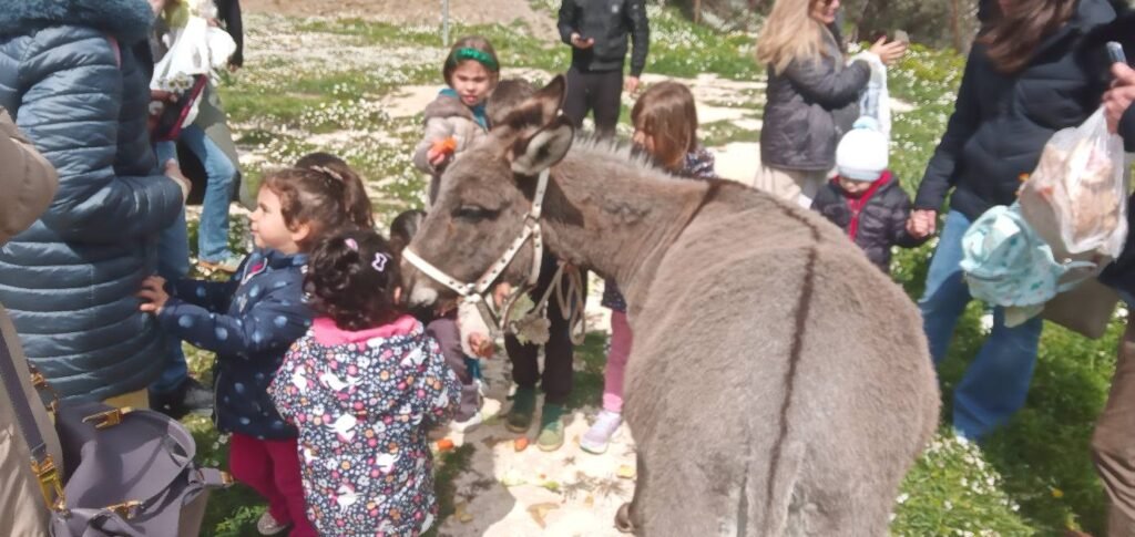 Και πριν φύγουν,αφού ευχαρίστησαν όλο το χωριό για την φιλοξενία, τάισαν τα γαϊδουράκια της φάρμας του Βαλάντη και ενθουσιάστηκαν.