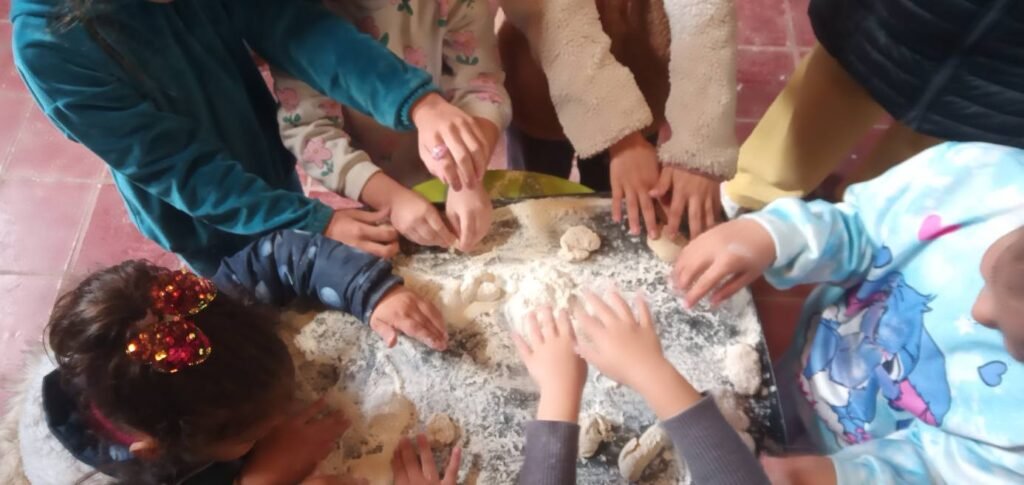 Στην συνέχεια ξεναγήθηκαν στους χώρους του Μουσείου και αφού οι μικροί μας φίλοι άλεσαν σιτάρι στον πέτρινο χειρόμυλο,έπλασαν με την ζύμη που κάναμε, κουλουράκια.