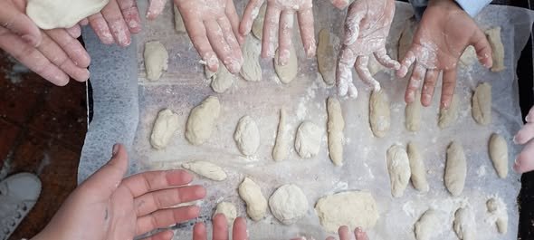 Αφού ξεναγήθηκαν στο Παλαιοχώρι έπλασαν κουλουράκια με το αλεύρι που άλεσαν στον πέτρινο χειρόμυλο.